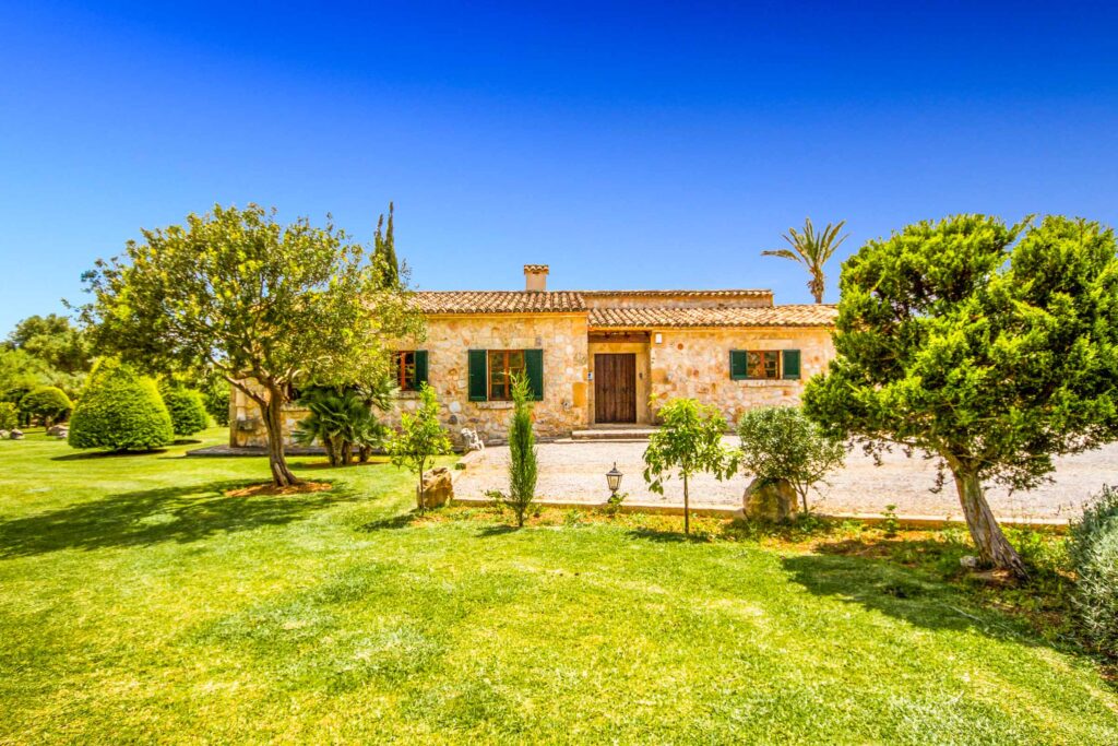 Diese historische, 300 Jahre alte Finca, aus Natursteinen gebaut, liegt in idyllischer Landschaft mit herrlichen Ausblicken auf die Ausläufer des Tramuntanagebirges. Auf dem grossen gepflegten Grundstück von 70.000 qm wachsen vor allem uralte Oliven- und Mandelbäume.